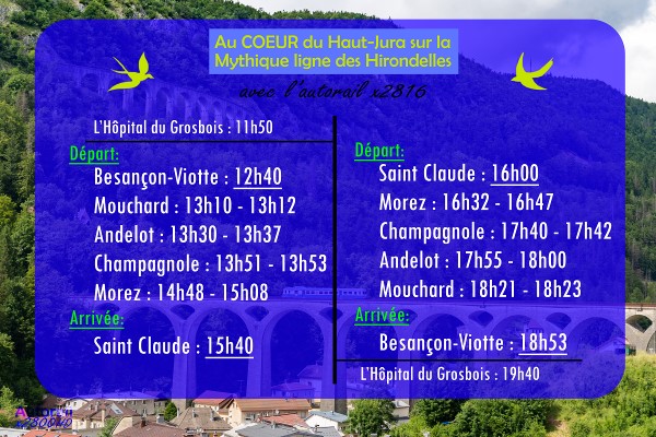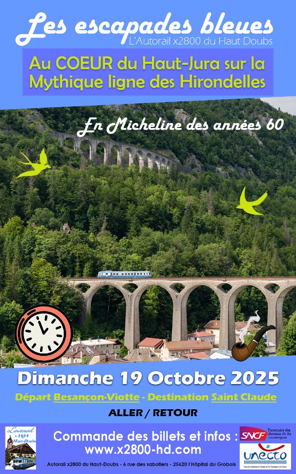 - Dimanche 05 octobre remplacé par train du dimanche 19 octobre sur Les Hirondelles